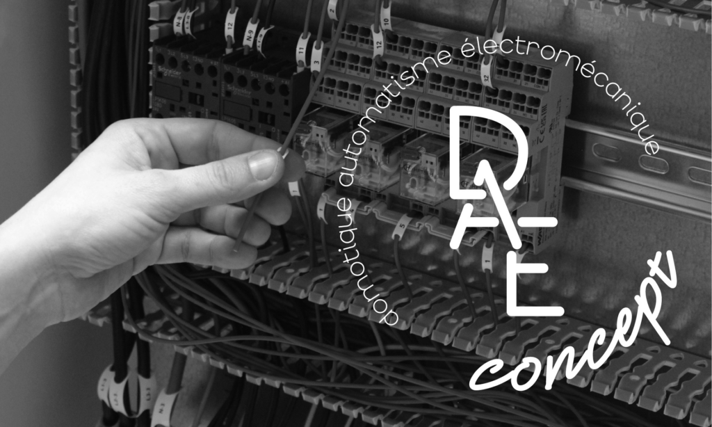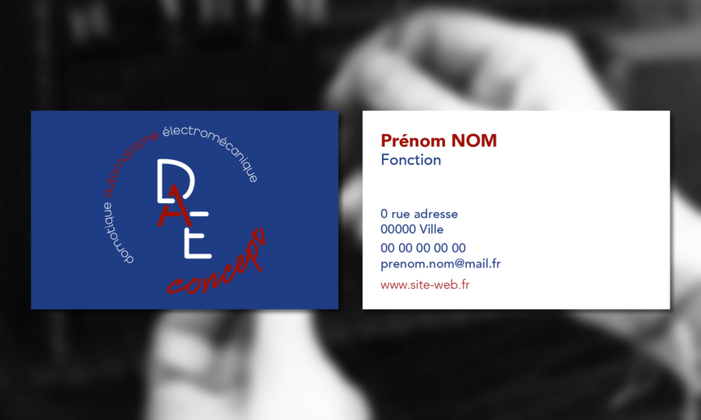 Le défi était de ne pas représenter le milieu de l’électricité avec une ampoule, j’ai fais le choix de rester sur un logo typographique et de jouer avec les lettres du nom de l’entreprise. Ici, les lettres « D » « A » « E » sont imbriquées pour montrer une unité des trois domaines d’expertise de l’entreprise. Les lettres sont volontairement droite pour accentuer la rigueur et le sérieux ; les majuscules ne sont gardées que pour l’acronyme, on retrouve les mots « domotique », « automatisme » et « électromécanique », qui permettent de rappeler les compétences de DAE concept. Le mot « concept » est manuscrit, comme une signature, afin de rappeler le côté humain derrière cet univers industriel.
